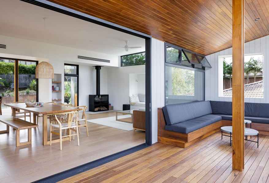 Large covered outdoor front and back entertaining decks – gas BBQ outdoor dining to seat 10, bar fridge.